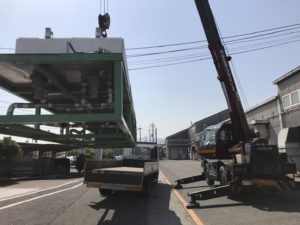 4/16~21日 投稿日2018年4月22日投稿者リフトスタッフ リフト(岡山本社)の活動内容です。 今週は重量物工事+土木工事を紹介します。 重さが約3トンで長さが8mもある機械を専用器具を使って搬出します! 作業中、同じ態勢な2人! 無事完了~! 来週からは開発工事着手の為、測量開始!!