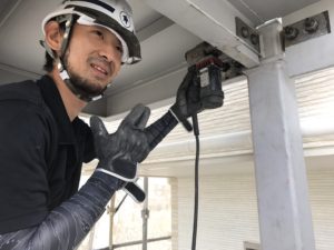 鉄骨階段を組立し本締め作業中!